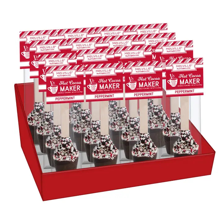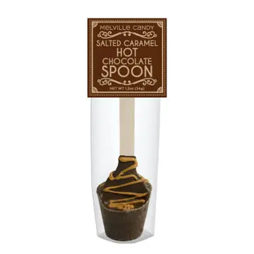 Indulge in effortless elegance with our Salted Caramel or Peppermint Hot Chocolate Spoons. Crafted from rich chocolate and cocoa powder, each hand-made spoon is enrobed in creamy milk chocolate and finished with a luxurious salted caramel drizzle. Simply place one spoon in hot water or milk, stir, and savor a perfectly balanced cup of hot cocoa—no mess, no fuss. At 1.2 oz each, these individually wrapped spoons deliver a sophisticated treat that dissolves completely. Slight variations in each hand-crafted piece add to their artisanal charm. Contains milk and soy; may contain egg, wheat, tree nuts, and peanuts.